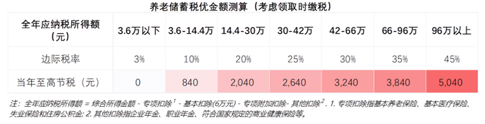 税优金额 = 入金个人养老金额 * (边际税率 - 3%)
