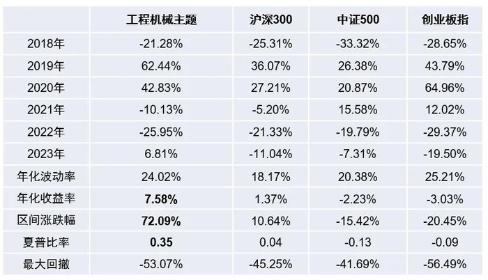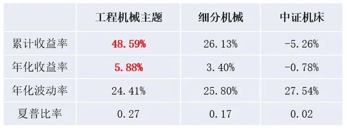 中证工程机械主题指数年化波动率为24.02%,最大回撤为53.07%。