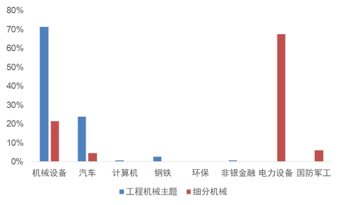 当前市场同类产品所追踪的指数为细分机械指数,从申万一级行业分布来看,工程机械指数成分股集中在机械设备相关企业,而细分机械指数成分股以电力设备相关企业为主。