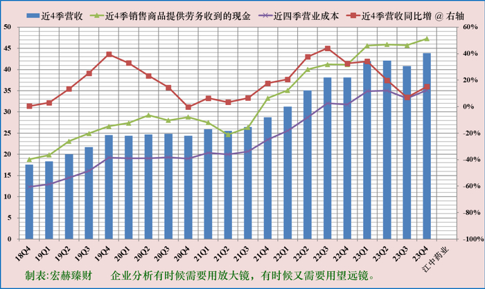 江中药业近四季度营收为43.9亿,归母净利润7.1亿,同比增长18.8%。