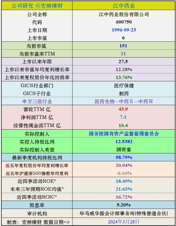 江中药业 当前市值152亿,位列第6位;市盈率21倍。