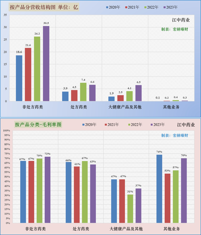 第一主营业务非处方药占营收比权重为69%,近三年同比增幅分别为:16%、21%、17%;去年末毛利率72%。