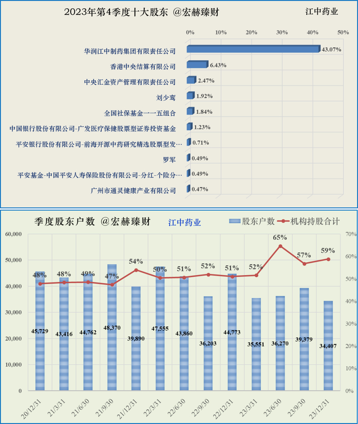 最新季度机构持股占比为【59%】;近三年机构持股占比均值为53%