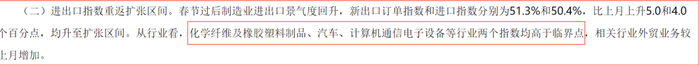 进出口指数,化学纤维及橡胶塑料制品、汽车、计算机通信电子设备等行业两个指数均高于临界点。进出口方面,汽车、科技行业景气度明显更高,领先于市场,汽车ETF和科技类ETF总体格局有增大的逻辑。