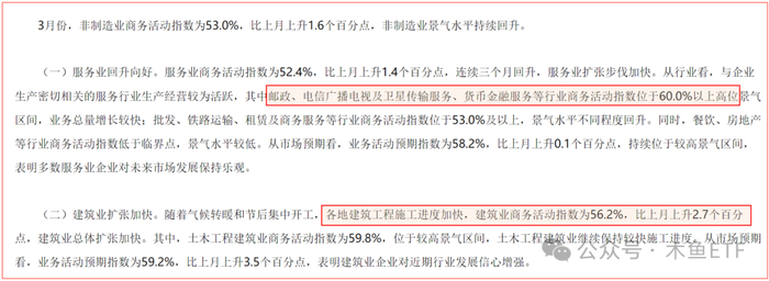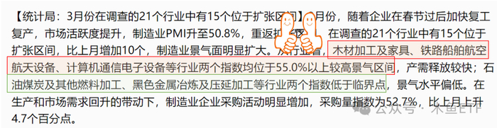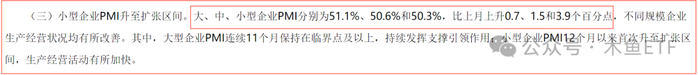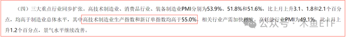 生产经营活动预期,农副食品加工、食品及酒饮料精制茶、铁路船舶航空航天设备、电气机械器材等行业生产经营活动预期指数均位于60.0%以上高位景气区间。这里注意,这个是预期,不是说现在已经60%以上了。但也许可以对食品饮料、酒这些ETF产生更高的期待了,此外,对于两航等制造业预期下次PMI数据应该仍有积极预期。