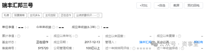 瑞丰汇邦三号,与上述产品可谓“不约而同”,产品净值也处于“保密状态”。