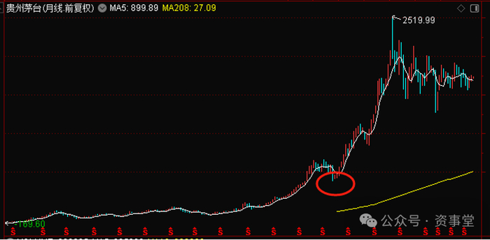 但能耗资百亿元,进攻一只股票,且准确抄底茅台(下图),赚下大钱,这等气魄、能力和眼界,必定不是一般人。