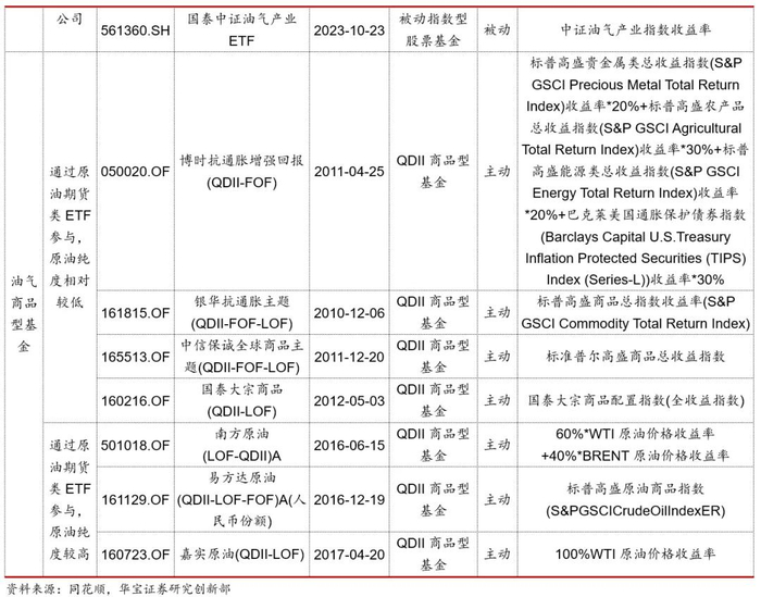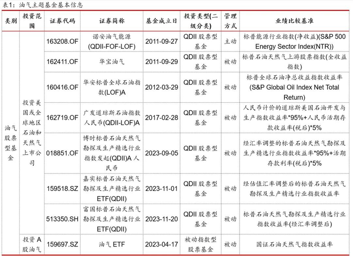 1、《油气股票型基金怎么选?——兼论油气股相对原油的价格变动规律》,华宝证券