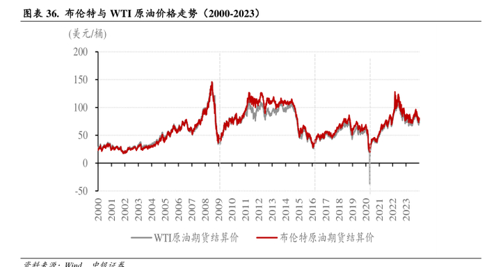 近20年的WTI原油价格走势基本上是以5到7年为一个周期,在30美元-120美元区间震荡。