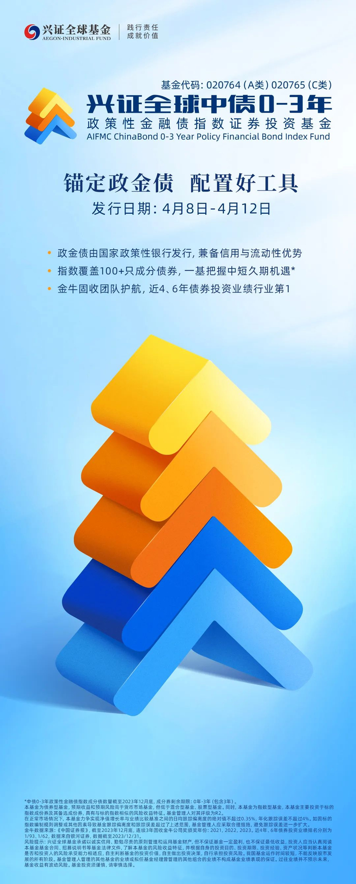 兴证全球中债0-3年政策性金融债指数基金(A类020764,C类020765)4月8日-4月12日正式发行!本产品跟踪政策性金融债指数,把握国家优质利率债机遇,力争满足投资者的闲钱理财、资产配置需求。