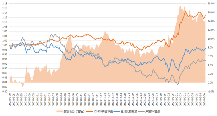 成立近一年来,在大幅波动的市场中,该产品最低净值为0.98元,破净天数只有25天左右,作为一只R5产品,最大回撤仅-6%。目前净值已升至1.17元附近。