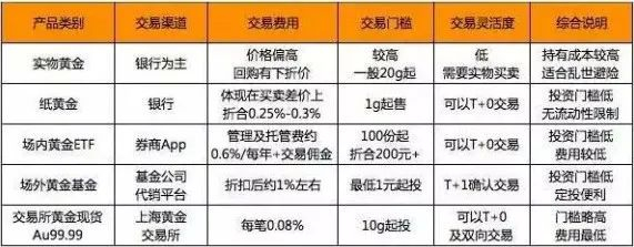 不超配,选择性投资的投资方式又有哪些呢?除了上面的这些方式,还有黄金期货。具体采用哪种投资方式,可能与投资者的偏好有关。而从综合费率、购买起点、风险控制及投资方便程度来看,黄金基金无疑是更适合普通投资者做黄金投资的选择。