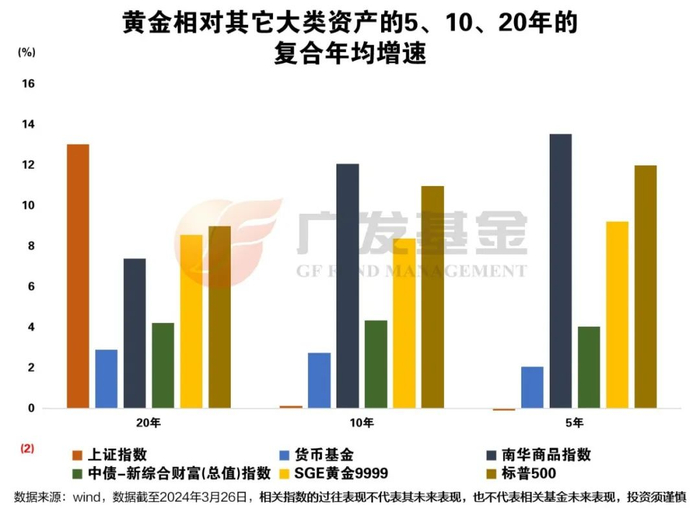 相对于其他大类资产,黄金中长期表现如何?