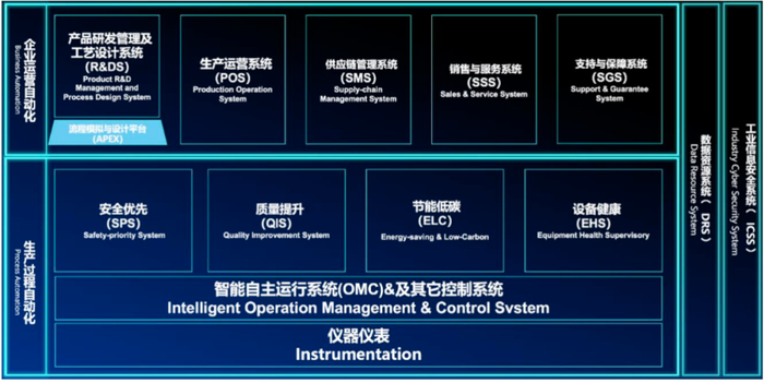 在“1+2+N”智能工厂新架构下,基于OMC2.0、APEX2.0、PRIDE将流程工业生产运行、工艺、设备、安全、环保、质量、运营管理等数据要素深度融合,助力流程工业企业实现全生命周期的自主运行。