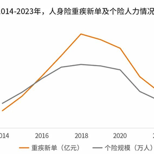 有数据统计,我国人身险公司的重疾险新单保费在2018年达到1000亿峰值后,连续5年呈现下滑趋势,到2023年,新单保费更是大幅减少,仅剩200亿水平。