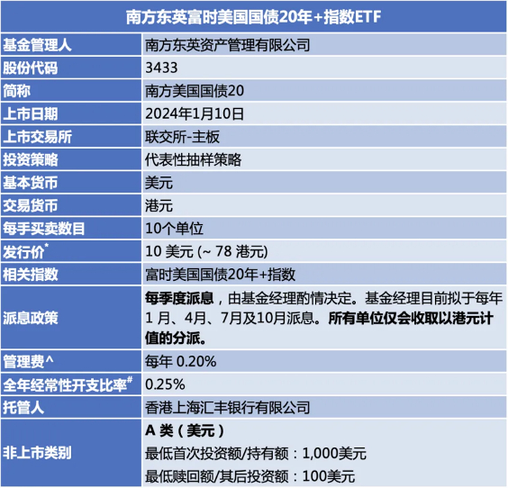 香港首只美国长债ETF——南方东英富时美国国债20年+指数ETF(3433.HK)将在4月25日派息啦!(《起风了!香港推出长期美债ETF迎降息周期》)