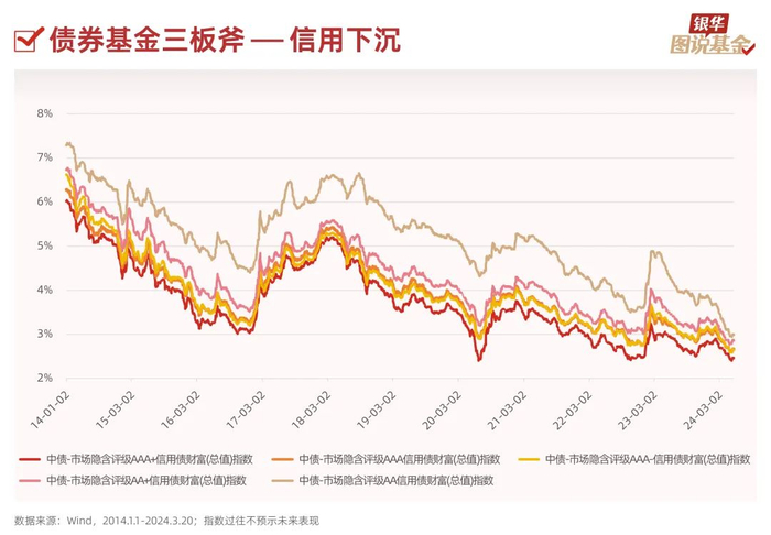 13、债券评级是指对债券发行人的偿债能力进行评估的一种评级,可以帮助投资者了解购买某只债券的风险程度。信用下沉策略则是指通过投资更多低评级的信用债,从而提高投资组合的利息收益。低评级的信用债通常利息相对较高,但同时也伴随相对较大的风险。