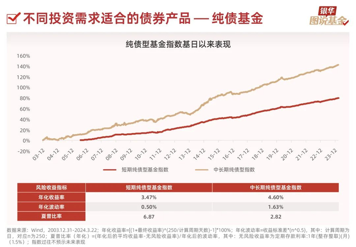 16、纯债型基金预期收益不算高,波动也比较低,一般较少出现年度级别的亏损,比较适合作为“防御型”的资产,用于家庭资产配置。通常来说,在利率高位,可以考虑投资中长期债券基金,在利率低位,可以投资中短期债券基金。