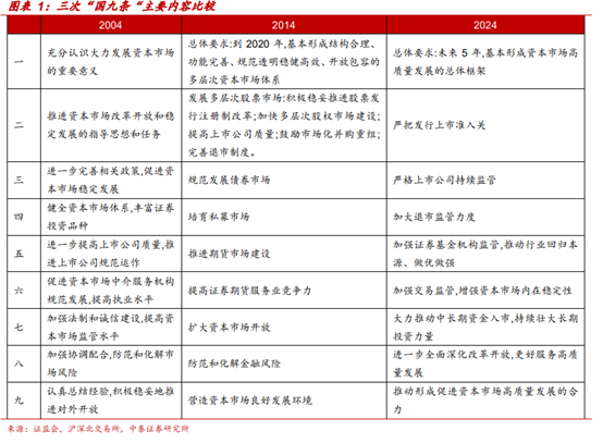 中国资本市场激荡三十年,历次的“国九条”都扮演着纲领性文件的角色,虽然承载着不同的历史背景和任务使命,但都是致力于解决核心问题,引领资本市场走向更深、更远处去。
