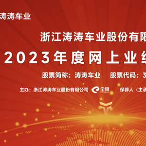 浙江涛涛车业股份有限公司将于2024年4月22日(星期一)下午15:30-17:00举行2023年度网上业绩说明会,欢迎广大投资者积极参与!