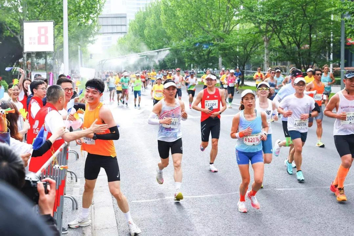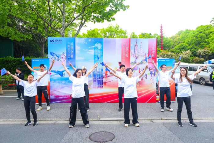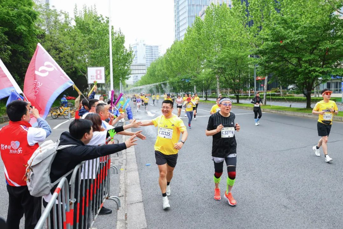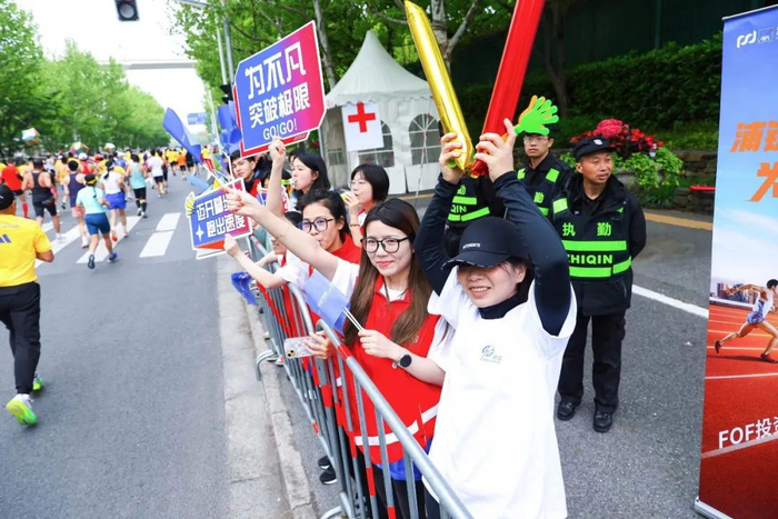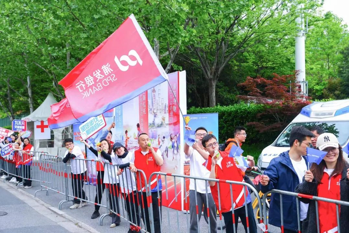 由浦发银行及各子公司志愿者组成的啦啦队,在沿途为跑者助威加油,成为赛场边的一道靓丽风景。