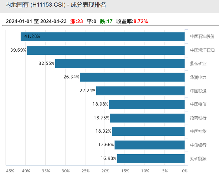 涨得多得主要是中石油中海油,通信巨头,还有资源巨头紫金矿业。