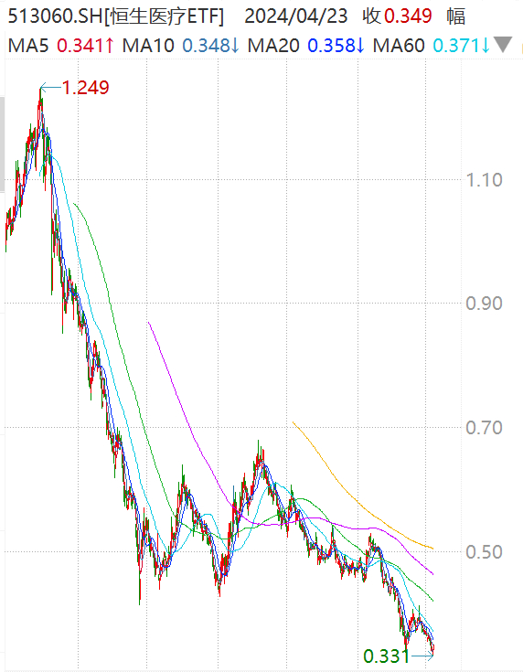 上周五恒生医疗ETF破了上市以来的最低点,净值从最高1.249元到了0.331,最大回撤73.4%。