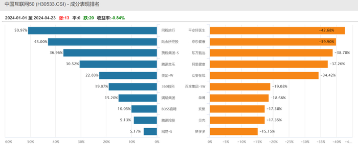 这几天腾讯、阿里涨的多,所以到现在中概互联今年是正收益,恒生科技还跌了将近9%。