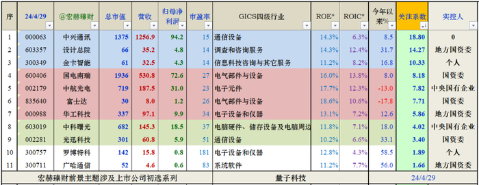 『量子科技』涉及上市公司财务指标TOP榜