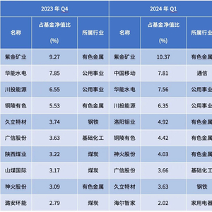 (数据来源:基金定期报告;所属行业按申万一级行业分类,分类数据来源Wind,截至2024.3.31。以上个股仅为基金季报中前十大重仓股举例,并不构成投资建议。最新持仓数据可能较定期报告披露时有所调整。)