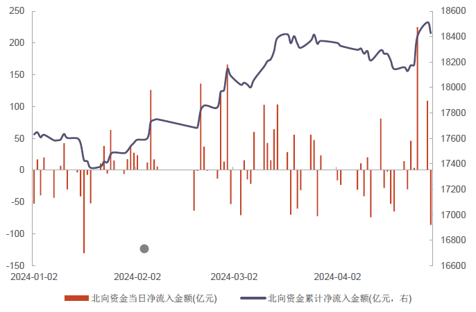 自从3月19日日本央行宣布结束负利率时代,同时取消负利率政策和收益率曲线控制(YCC),日元持续下跌。4月日本央行的利率决议,将基准利率维持在0-0.1%,引发日元再一轮下跌,美元兑日元一度达到158。此前受日元强避险属性吸引的资金回流港股及A股市场。此外,4月下旬以来债市回调,一些资金撤出长久期的债券市场。债券市场流出的资金也带来了A股流动性的改善。