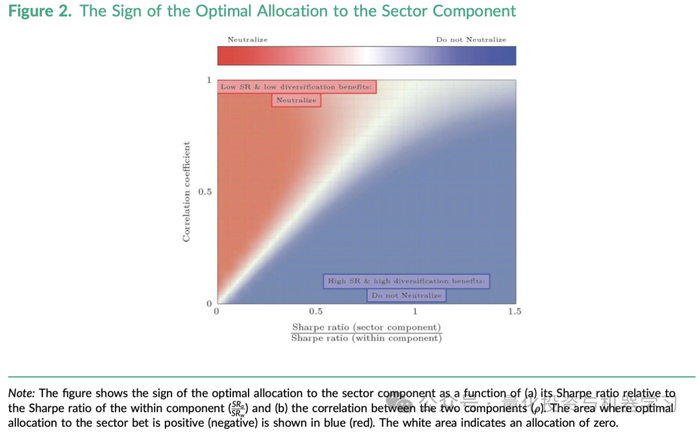 因此,如果行业间信号的夏普比率相对于内部信号的夏普比率较低,并且两个信号之间的相关性较高,那么在追求均值-方差效率的情况下,行业间信号可以被认为是冗余的,投资者可能会选择忽略它,从而实现行业中性。这样做的目的是为了构建一个更有效(风险调整后回报更高)的投资组合。