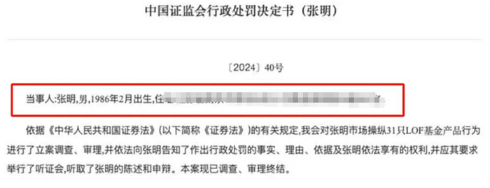 张明因在2021年1月1日至2022年12月31日期间控制使用“郭某”等账户市场操纵国富恒利债券等31只LOF基金产品(不光有债券基金,也有股票基金),被立案调查、审理,被没收违法所得153.59万元,并处以307.18万元罚款,合计460.77万元。
