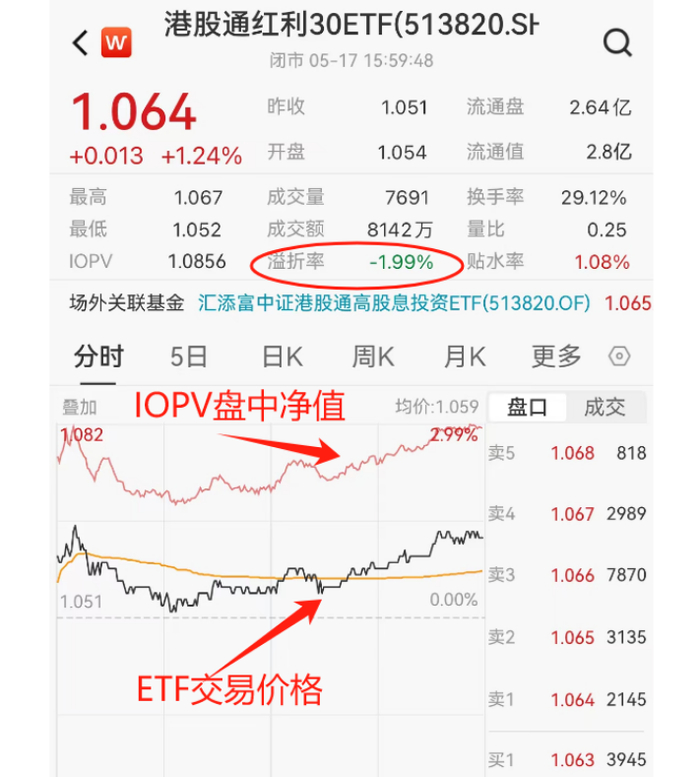 IOPV盘中净值 < ETF交易价格 是溢价;