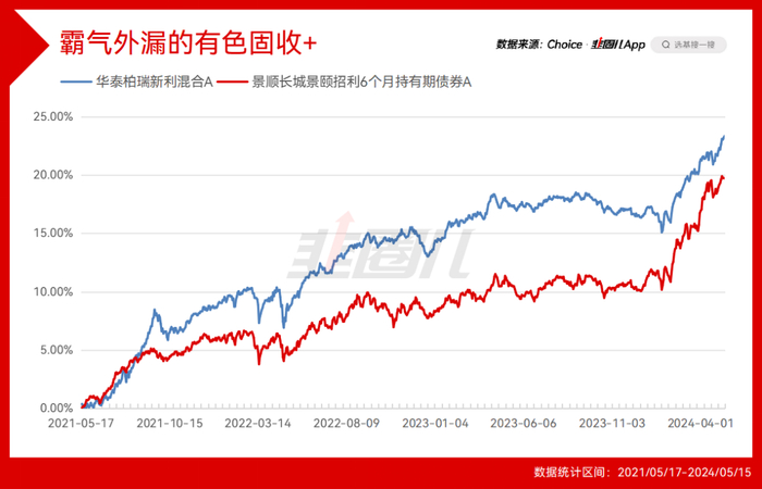 然后除了这些品种以外,董辰参与合管的黄金系列固收+,邹立虎参与合管的景顺长城景颐招利6个月持有期债券A,业绩也非常炸裂。