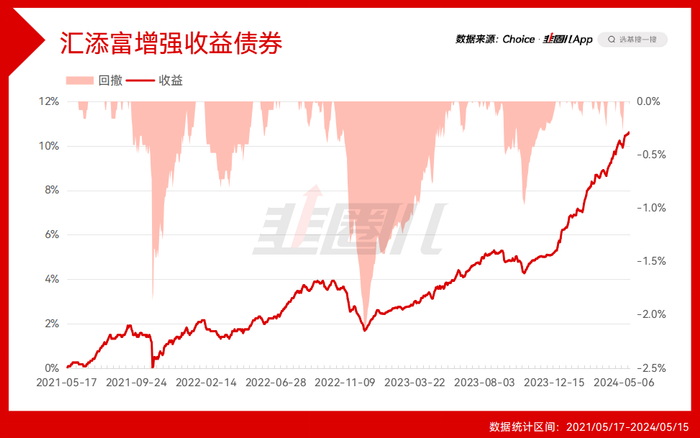 汇添富增强收益债券,近三年最大回撤2.16%,近3年收益10.65%,2021-2023平均权益仓位是3.66%,2024Q1的权益占比6.14%。