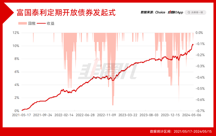 富国泰利定期开放债券发起式,近三年最大回撤0.65%,近3年收益10.23%,2021-2023平均权益仓位是3.98%,2024Q1的权益占比8.33%。