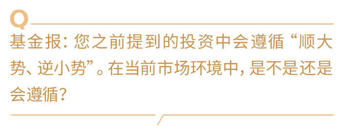 张文君:会。目前来讲,经济基本面大概率处于底部,一些偏制造业的行业出现底部向上趋势,偏周期上游早复苏的一些行业也出现底部补库情况,而且稼动率也开始逐渐提升。因此,中长期来讲,未来期待有逐渐向上的趋势。在我来看,这就是一个“大势”,所以在投资中也会配置的相应品种,也就是所说的“顺大势”。