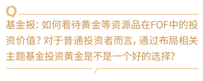 另外,近期黄金比较出圈。在我看来,黄金目前短期涨幅比较显著,可能也存在波动风险,但实际上投资过程中很难控制资金属性带来的资产价格的波动。如果从组合管理的角度来讲,我们认为黄金资产在FOF投资里有一定的配置必要性。在美国的一些FOF组合中,黄金其实是“必配”品种,约占2%- 5%的配置比例。这是因为全球货币一直处于“超发”阶段,特别是2008年次贷危机之后,黄金的避险属性、金融属性,都决定了其在组合里面能够一定程度有效的平抑波动。但如果大家认为配置黄金资产短期能够获得很高的收益,这个难度很大,我认为还是要从长期角度进行配置。