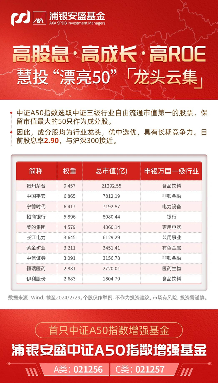 在这样的新风向下,浦银安盛推出重磅新基——浦银安盛中证A50指数增强,在投资中证A50指数的基础上,采用量化方式追求表现增强,成为的聚焦大市值龙头重要投资选择之一。