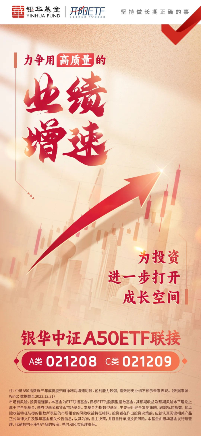 A50ETF基金(159592)及其联接基金银华中证A50ETF联接(A类:021208,C类:021209),紧密跟踪中证A50指数,兼备成长进攻和红利防守属性,投资者不妨借道一键布局“成长+红利”~