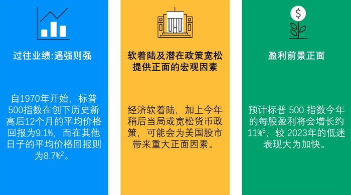 经济软着陆,加上美当局今年稍后或会略为宽松货币政策,可能会为美国股市带来正面前景。事实上,历史数据亦印证了这一点。自1980年至今的44年里,美联储在14个并非经济衰退的年度中降息最少一次2在这14个年头,标普500指数在其中13年(即93%)取得正回报,平均涨幅为15.6%2