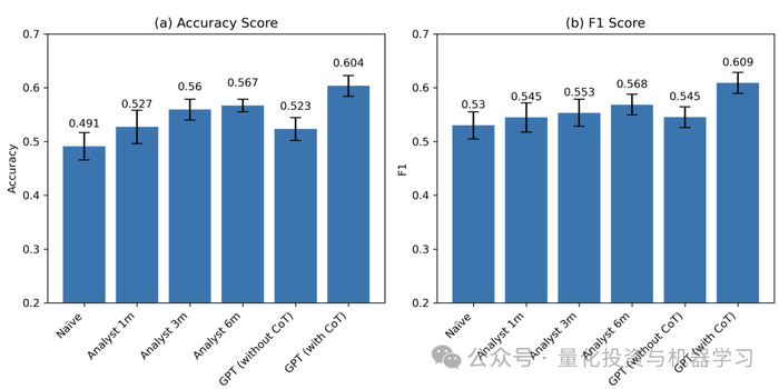 结果显示,在使用CoT提示时,GPT的预测准确率显著高于分析师的预测。