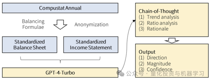 6、模型训练与预测:作者使用上述标准化和匿名化的财务报表以及设计好的提示来训练LLM,并要求模型进行预测。