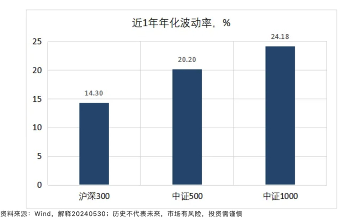历史波动率方面,中证1000指数的近一年年化波动率大约在24.18%左右,相对高于中证500的20.20%。在历史涨幅相近的情况下,中证500指数具有相对更低的历史波动率,对于指数投资来说,中证500指数或许是更值得考虑的标的。(历史不代表未来,市场有风险,投资需谨慎)