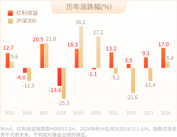 回顾近十年,相比沪深300的波动不断,红利指数整体呈现在震荡中持续上行的特征,尤其是近几年市场单边下跌的情况下,红利策略优势愈发明显。