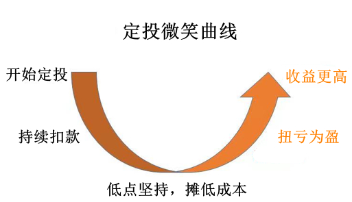 如果股市在一段时间内,呈现一波先下跌、再回升的走势,对于定投而言,就构成一条类似“笑脸”的曲线,称为“微笑曲线”。