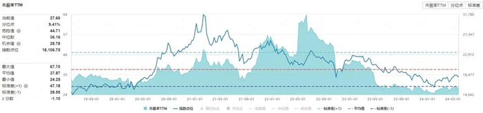 截至2024年5月24日收盘,主要消费指数动态市盈率PE(TTM)为27.66倍,位于最近五年以来9.41%历史分位数;市净率为4.83倍,位于最近五年以来0.78%历史分位数。