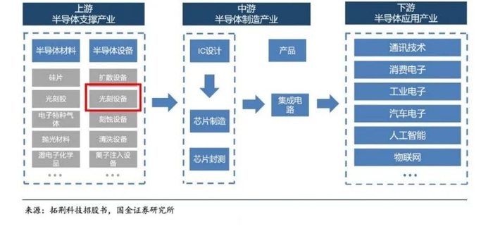 一块芯片从前期研发到生产出成品,需要经过设计、制造、封测三个环节,半导体设备是半导体产业链的支撑,而光刻工艺是是制造芯片最为重要的设备,没有之一,光刻机直接决定了半导体制程的先进程度;另外,光刻机极为精密,制造难度大,稀缺性极强。
