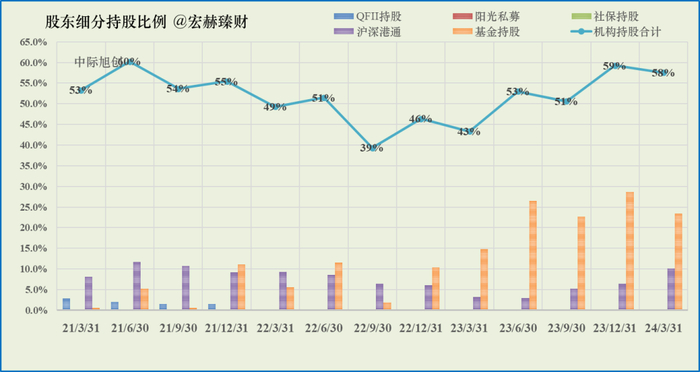 最新季度机构持股占比为【58%】;近三年机构持股占比均值为52%